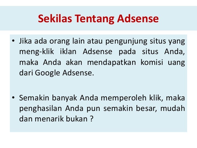 google adsense dan juga penghasilan adsense. Pada dasarnya,
