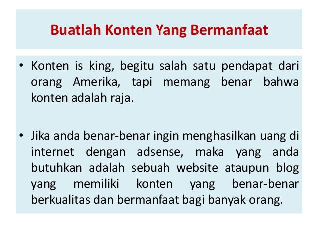 • Google Adsense bukanlah sebuah program yang diciptakan